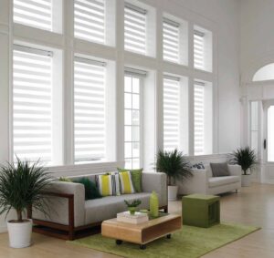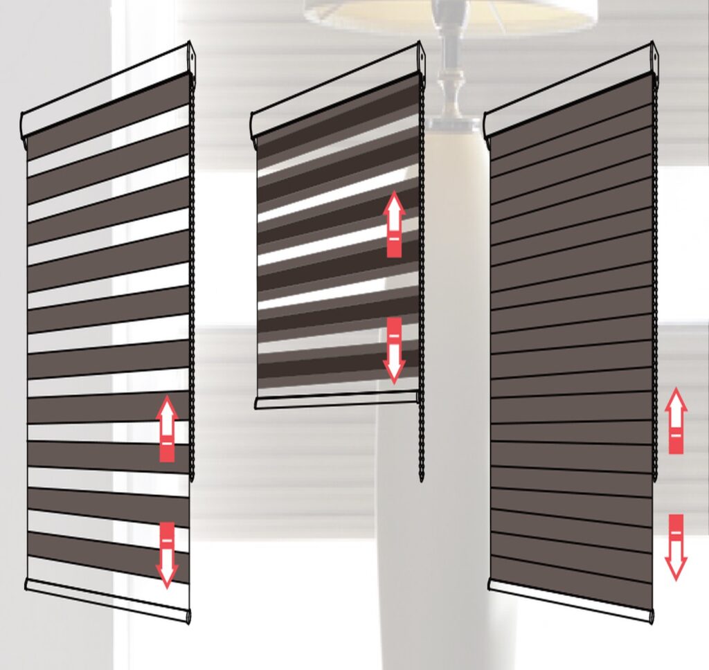 Duo blinds combine style and functionality with layered fabrics that allow flexible light control throughout the day. The alternating sheer and opaque bands make it easy to balance privacy and natural light. A modern solution that operates like a classic roller blind, with optional blackout performance.